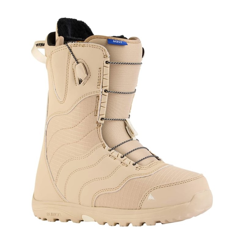 Women's Burton Mint Snowboard Boot. HARDGOODS. BOOTS. SPEEDZONE. One of the softest, most forgiving boots Burton makes to keep you happy through hours of on-hill action, no matter where you prefer to ride. Whether you ride a few times a week or a few times a year, the women's Burton Mint Snowboard Boots are up to the task of keeping your feet warm, happy, and riding longer. They have a low-volume fit with a broken-in feel right out of the box. Lacing is fast and secure with our Speed Zone system that lets you separately adjust the tension in upper and lower zones. Heat-moldable liners mean you can really customize the fit. On snow, it's one of the softest, most forgiving women's boots we make, setting you up for laid-back feel and all-around comfort, no matter what terrain you choose to ride.